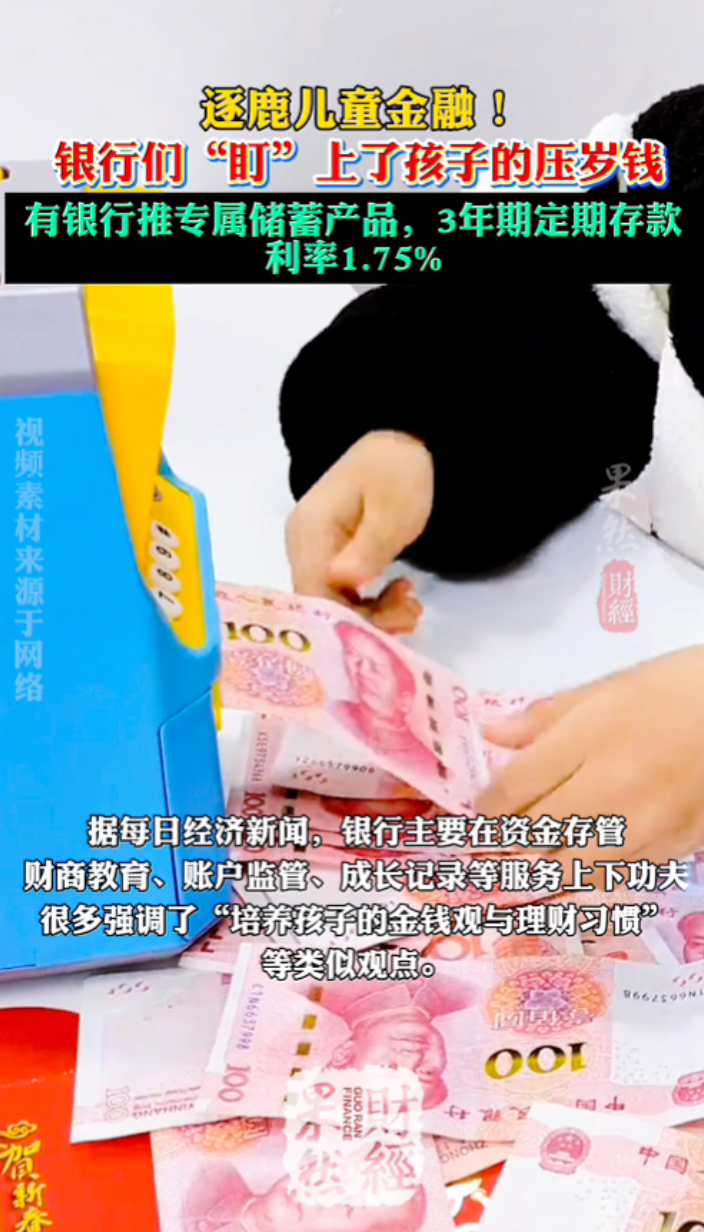 果然财经|银行们“盯”上了孩子的压岁钱,3年定期1.75%齐鲁壹点 | 02-10 原创齐鲁晚报·齐鲁壹点客户端 微信扫码扫码下载客户端近期,不少银行为了抢占少儿金融市场的先机,接连发布关于压岁钱储蓄、理财的银行产品或者活动信息,比如,北京农商银行推出“阳光宝贝卡”专属储蓄产品,3年期定期存款利率为1.75%。据每日经济新闻,银行主要在资金存管、财商教育、账户监管、成长记录等服务上下功夫,很多强调了“培养孩子的金钱观与理财习惯”等类似观点。