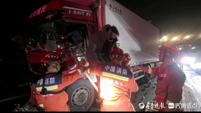 果然视频|货车追尾前车,消防员破拆搭梯救出被困男子齐鲁晚报·齐鲁壹点客户端 02-11原创2月9日晚,潍坊,两辆货车发生事故,一男子被困后车驾驶室中。接到求助,潍坊消防安丘大队立即到场破窗搭梯,及时协助男子脱困。(齐鲁晚报·齐鲁壹点记者 尉伟 通讯员 韩浩宇)