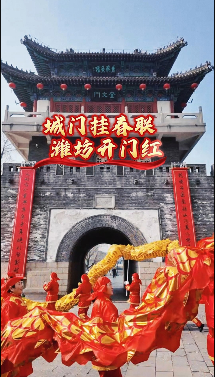 果然视频|城门挂春联,潍坊开门红!奎文门城墙上挂起巨幅春联齐鲁晚报·齐鲁壹点客户端 02-11原创2月11日,潍坊市“同挂春联启新程・更好潍坊开门红”暨非遗促消费活动启动仪式在潍坊泰华城假日广场举行。在奎文门的揭春联仪式作为活动重头戏,将一等奖楹联正式悬挂于奎文门两侧,上联为“龙腾海岳,象稳山河,万亿扬帆追远梦”;下联为“文润古今,业兴齐鲁,千年焕彩启新程”。联语寄托了潍坊在新的一年里凝心聚力、奋勇争先,推动各项事业高质量发展的美好愿景。齐鲁晚报·齐鲁壹点 胡晓雪 王钟玉