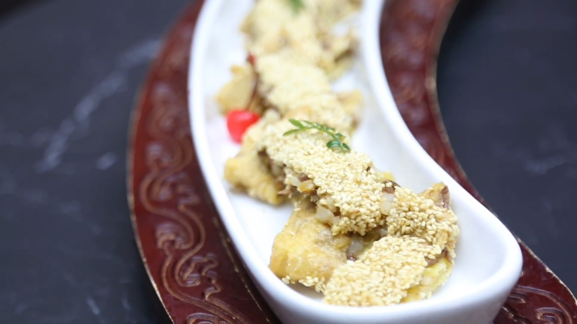 刘强表示,这道菜选用牛腱子肉,裹入清甜爽脆的马蹄与白芝麻,卷制成型后煎至外焦里嫩。牛肉的鲜嫩、马蹄的脆爽、芝麻的浓香,三重口感在口中层层递进、完美融合。外皮焦香微酥,内里汁水饱满,咸鲜中带着淡淡清甜,解腻又提香。造型精致、口感丰富,既保留了牛肉的醇厚,又增添了清爽与层次,是一道颜值与味道兼备、传统与创新相融的创意佳作。