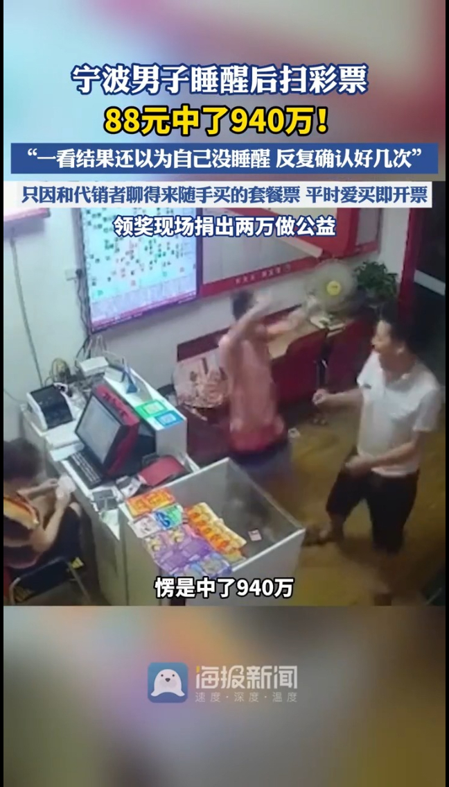 主播说|宁波男子睡醒后扫彩票,88元中了940万!平时爱买即开票 本次是随手买的套餐票