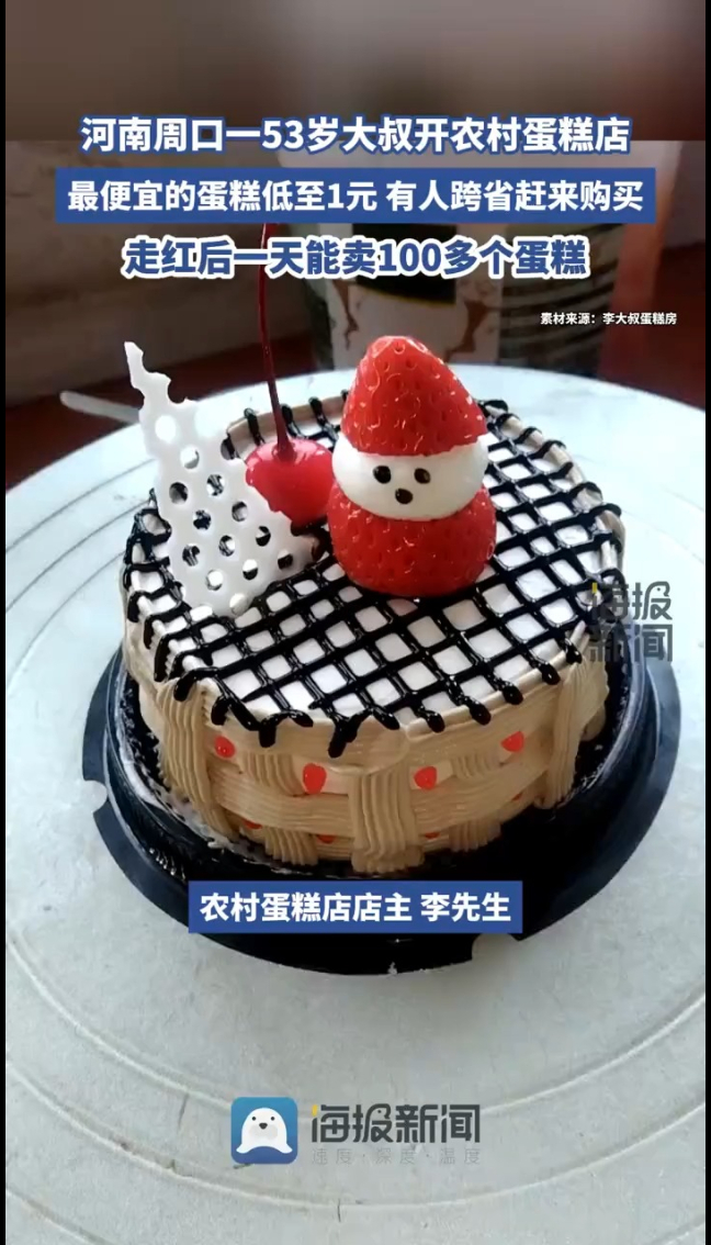 1元的挤满奶油的纸杯蛋糕、5元的包装精美的草莓蛋糕、10元的裱花精细的4寸生日蛋糕……最近,河南周口一家开在农村的蛋糕店凭着“令人震撼”的超高性价比爆火,店主李大叔透露,从最开始营业时“一天15个蛋糕都卖不完”到现在一天能卖上百个蛋糕,他只用了两个月时间,而这一切改变的缘起只是几条简单的短视频。