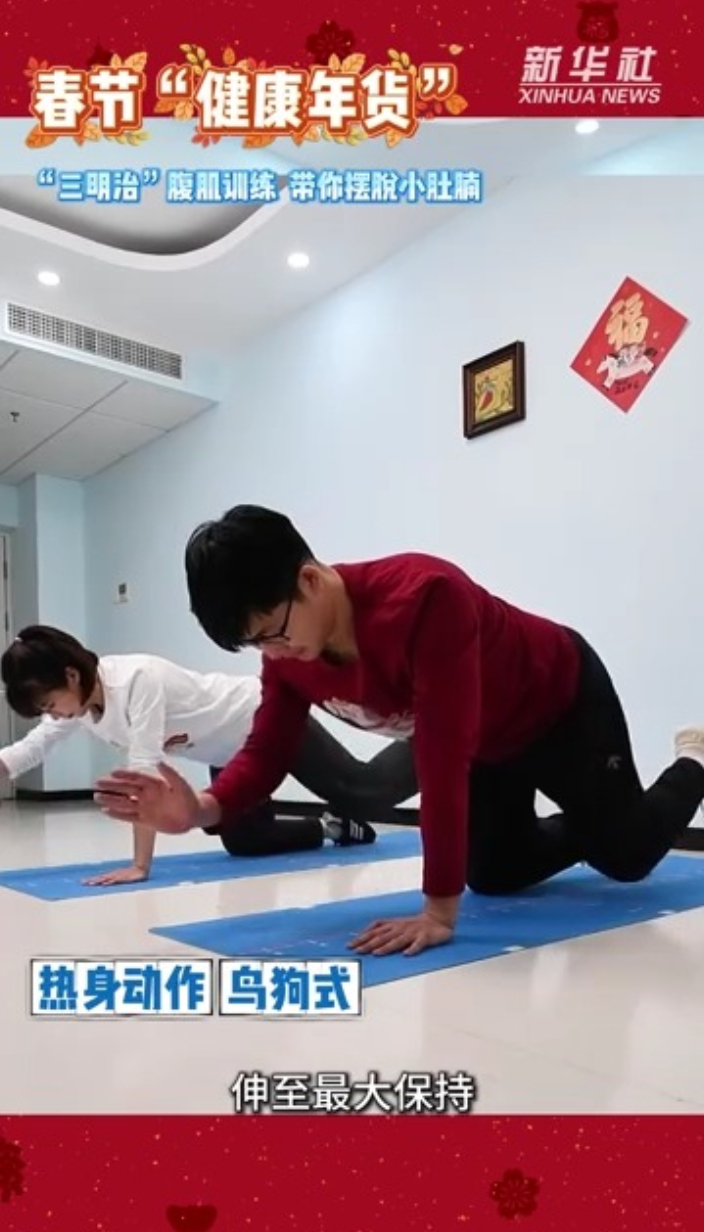 春节假期,你是否也担心小肚腩“蹭蹭涨”?专家带你用“三明治”的方法训练腹肌,和家人一起练起来!(新华社)