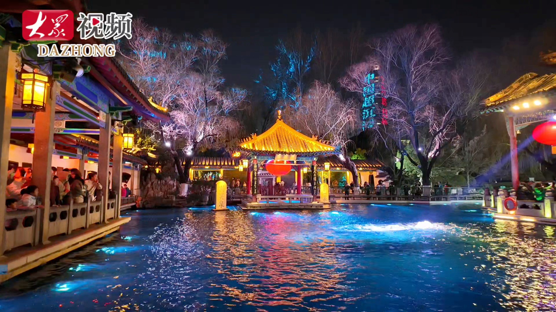 灯火映泉年味浓,趵突泉临近闭园游客仍流连忘返