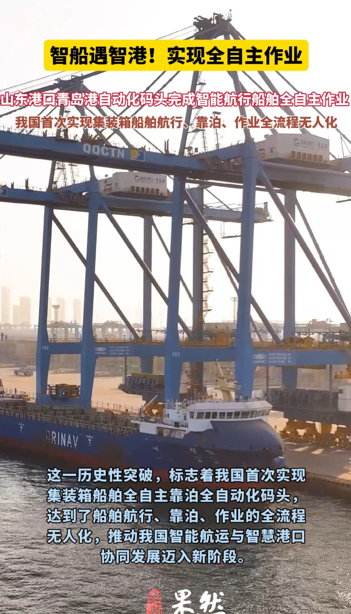 果然视频丨我国首次!智能船舶自动停靠、智能码头自动装卸!