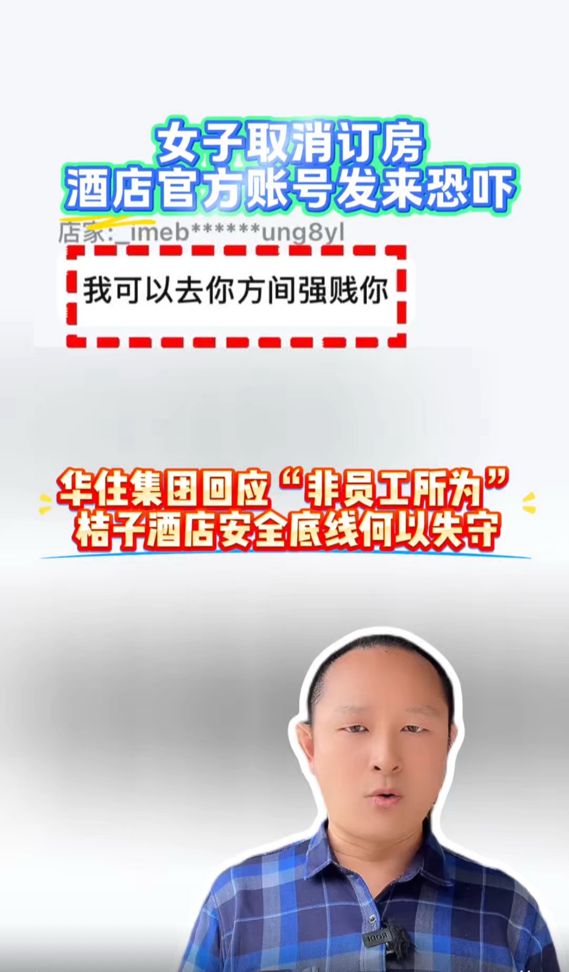 半岛时评| 女子取消订房,酒店官方账号发来恐吓,华住集团回应"非员工所为",桔子酒店安全底线何以失守半岛新闻 | 02-22 原创半岛都市报·半岛新闻客户端 微信扫码扫码下载客户端半岛时评| 女子取消订房,酒店官方账号发来恐吓,华住集团回应"非员工所为",桔子酒店安全底线何以失守