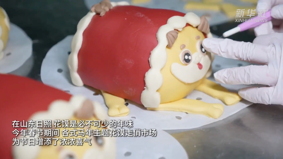 在山东日照,花馍是必不可少的年味。今年春节期间,各式马年主题花馍走俏市场,为节日增添了浓浓喜气。