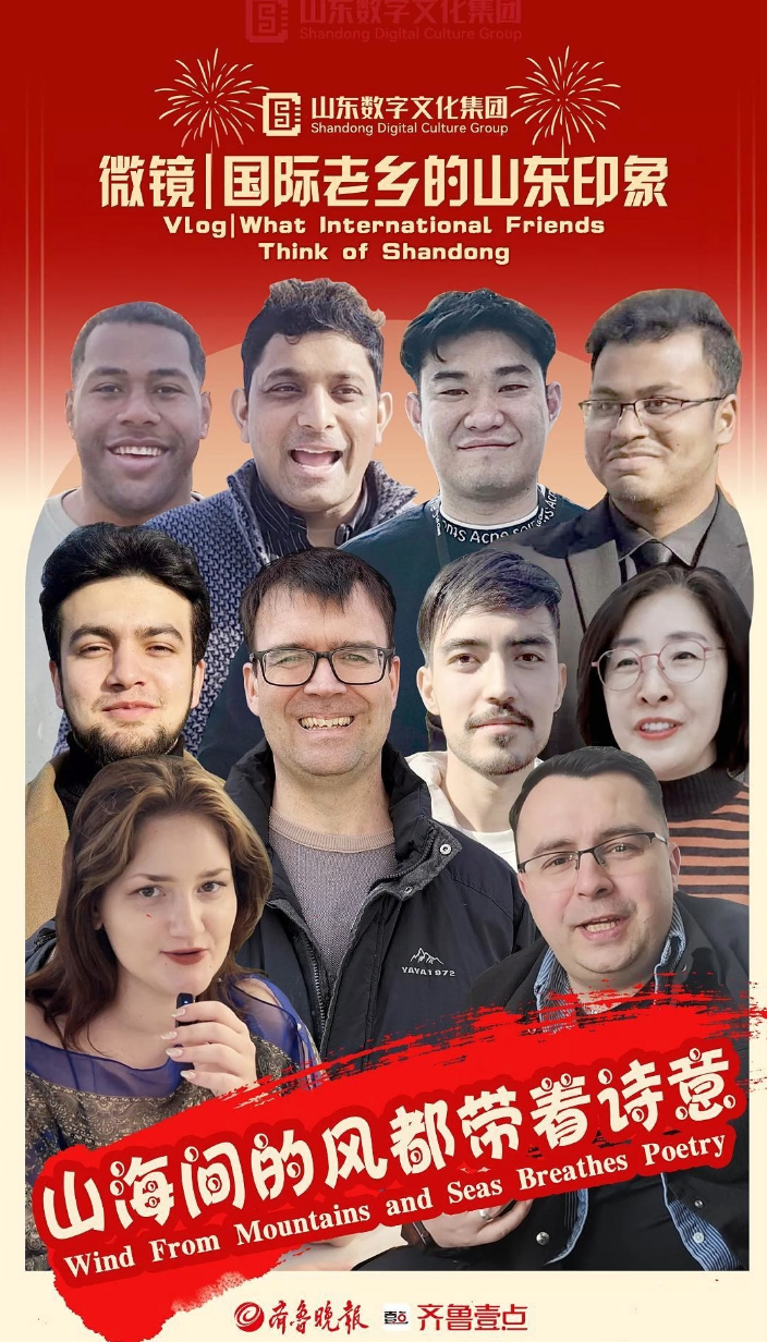 新春走基层·国际老乡的山东印象|山海间的风都带着诗意 A journey of poetry and prosperity齐鲁晚报·齐鲁壹点客户端 02-22原创齐鲁晚报·齐鲁壹点邀请10位国际老乡聊聊他们感受到的山东年味儿和浓厚的文化氛围。(齐鲁晚报·齐鲁壹点记者 王娟 王晓莹 董从哲 高建璋 刘凯平 李孟霏 实习生 田宝亮 栾皓竣 设计 徐进)