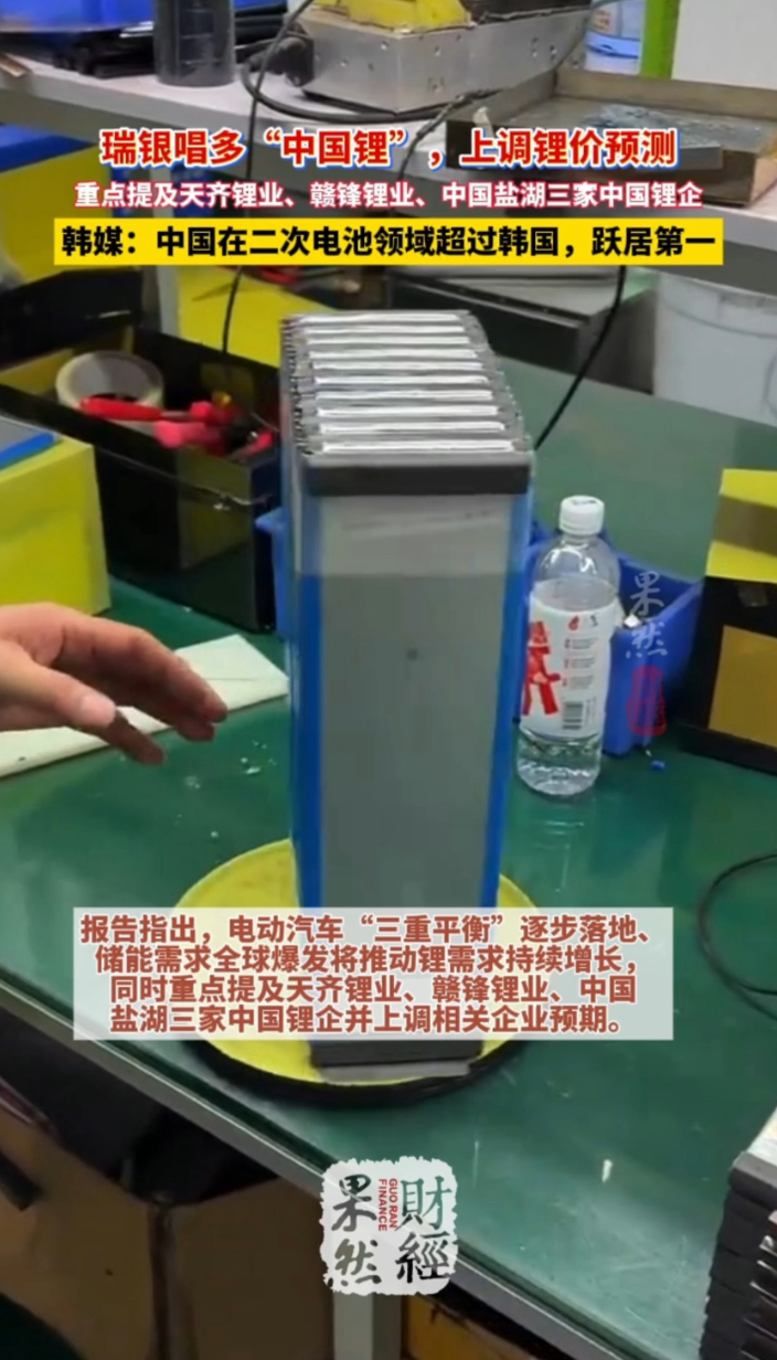果然财经|瑞银力挺“中国锂”!韩国电池技术高地失守齐鲁壹点 | 02-23 原创齐鲁晚报·齐鲁壹点客户端 微信扫码扫码下载客户端2 月初至春节,瑞银连发报告看好 “中国锂”,大幅上调锂价预测,称市场已进入第三次锂价超级周期,并重估天齐锂业等三家中国锂企。业内认为,瑞银对锂供应判断偏保守、对储能需求或高估。另据韩联社 22 日消息,2022-2024 年,在韩国重点布局的11大领域、136项核心科学技术中,唯一领先的二次电池技术,已被中国反超。