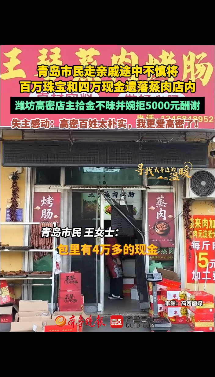 寻找我身边的温暖|价值百万珠宝遗落商铺,潍坊高密店主拾金不昧