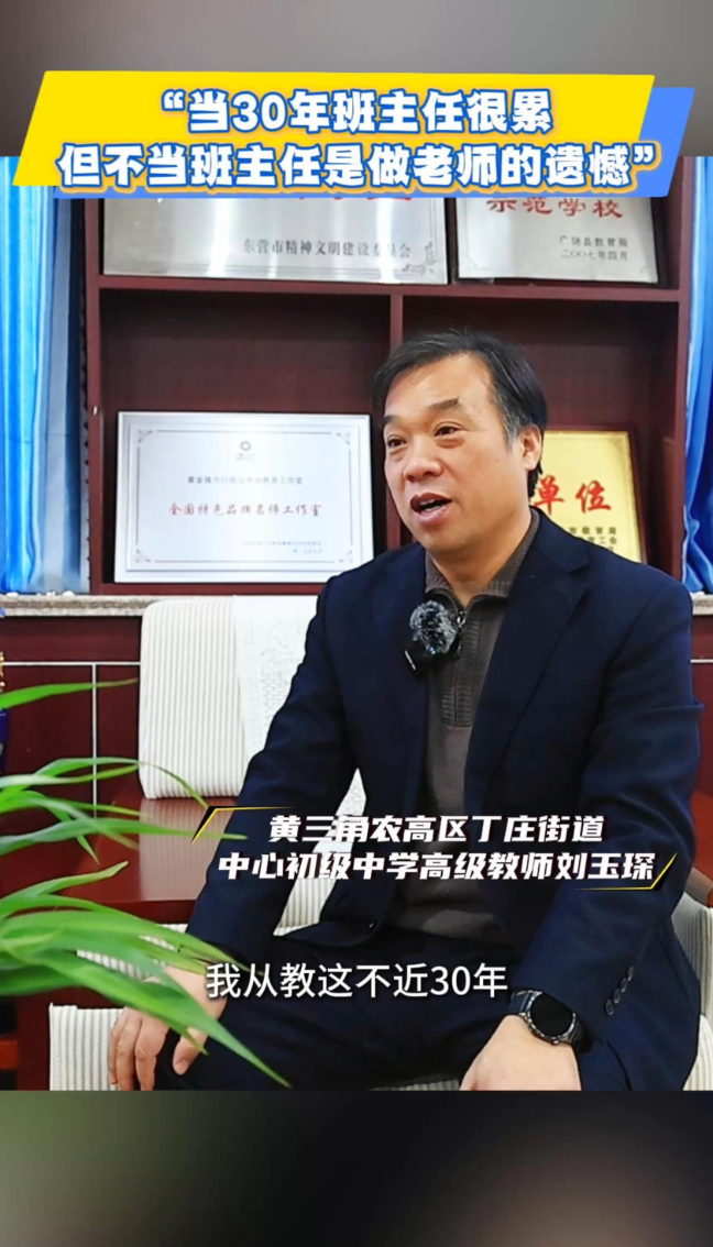 丁庄街道中心初级中学高级教师刘玉琛:“当30年班主任很累但不当班主任是做老师的遗憾”大众新闻 昨天16:51原创丁庄街道中心初级中学高级教师刘玉琛:“当30年班主任很累但不当班主任是做老师的遗憾”(大众新闻记者 杜美萱 刘海文)