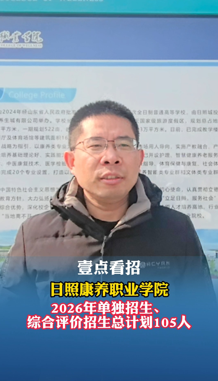 果然视频|招105人!日照康养职业学院2026单综招明起报名 昨天11:22 大众报业·齐鲁壹点 微信扫码扫码下载客户端日照康养职业学院2026年单独招生、综合评价招生总计划105人,其中单独招生计划30人,综合评价招生计划75人,单独招生一个专业,为医学检验技术专业,招生计划30人,综合评价招生专业两个,为中医康复技术和康复治疗技术专业,分别为40人和35人。(齐鲁晚报·齐鲁壹点 王婷婷)