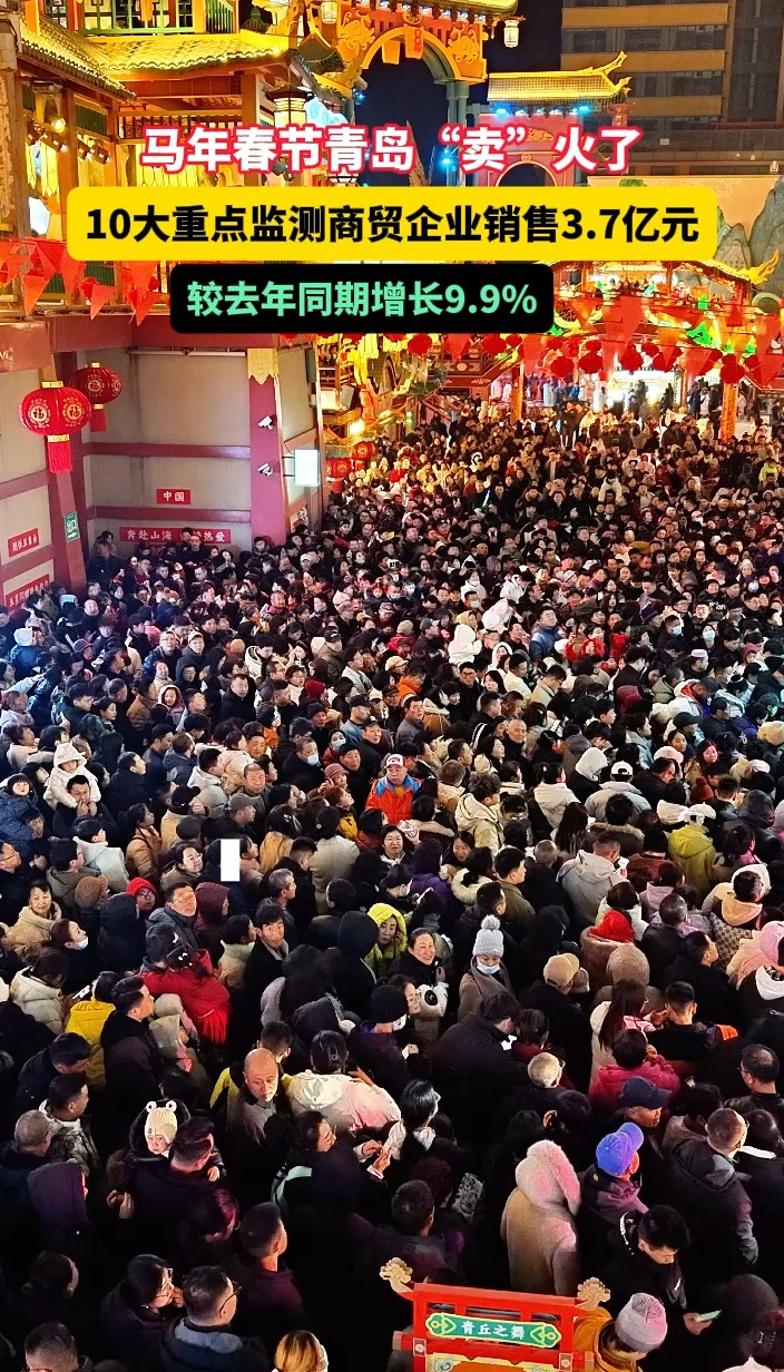 果然视频丨春节假期,青岛十大重点监测商贸企业卖出3.7亿元齐鲁晚报·齐鲁壹点客户端 昨天13:11原创春节假期,青岛市商务局围绕“山海迎春 乐购青岛”新春消费季主题,通过市区统筹、政企联动、试点赋能,举办系列促消费活动,充分释放全市“吃住行游购娱”全业态消费潜力,推动全市新春消费市场开门红。春节假期,全市10大重点监测商贸企业实现累计销售额3.7亿元,较去年同期增长9.9%。(齐鲁晚报·齐鲁壹点记者 尚青龙)