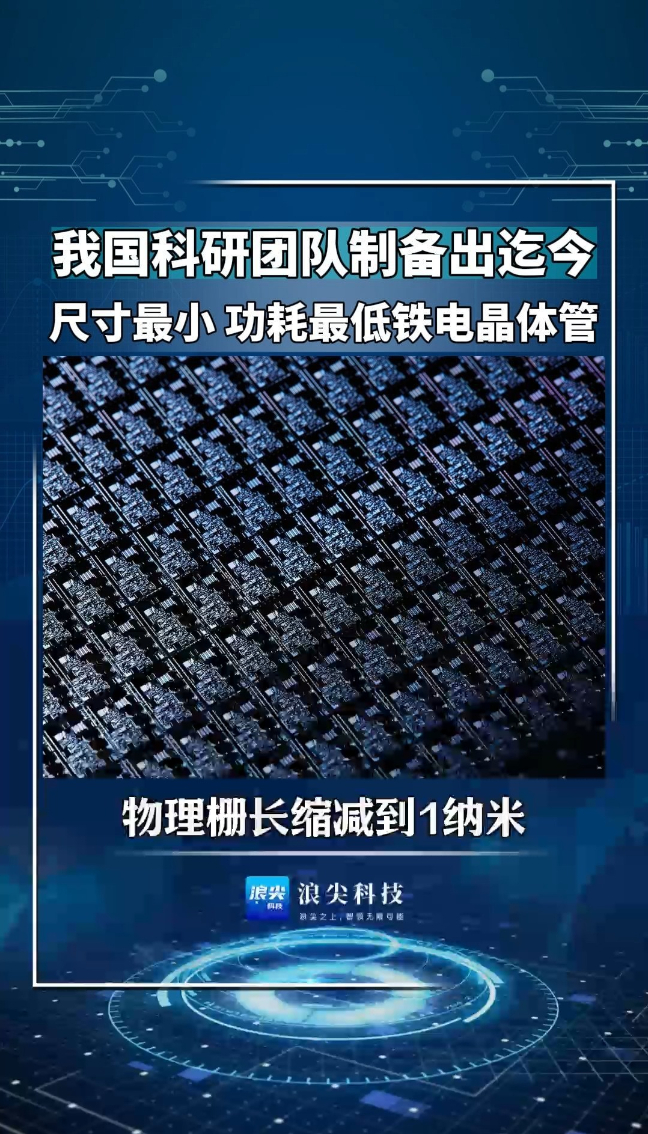 浪尖科技 | 我国科研团队制备出迄今尺寸最小 功耗最低铁电晶体管 物理栅长缩减到1纳米
