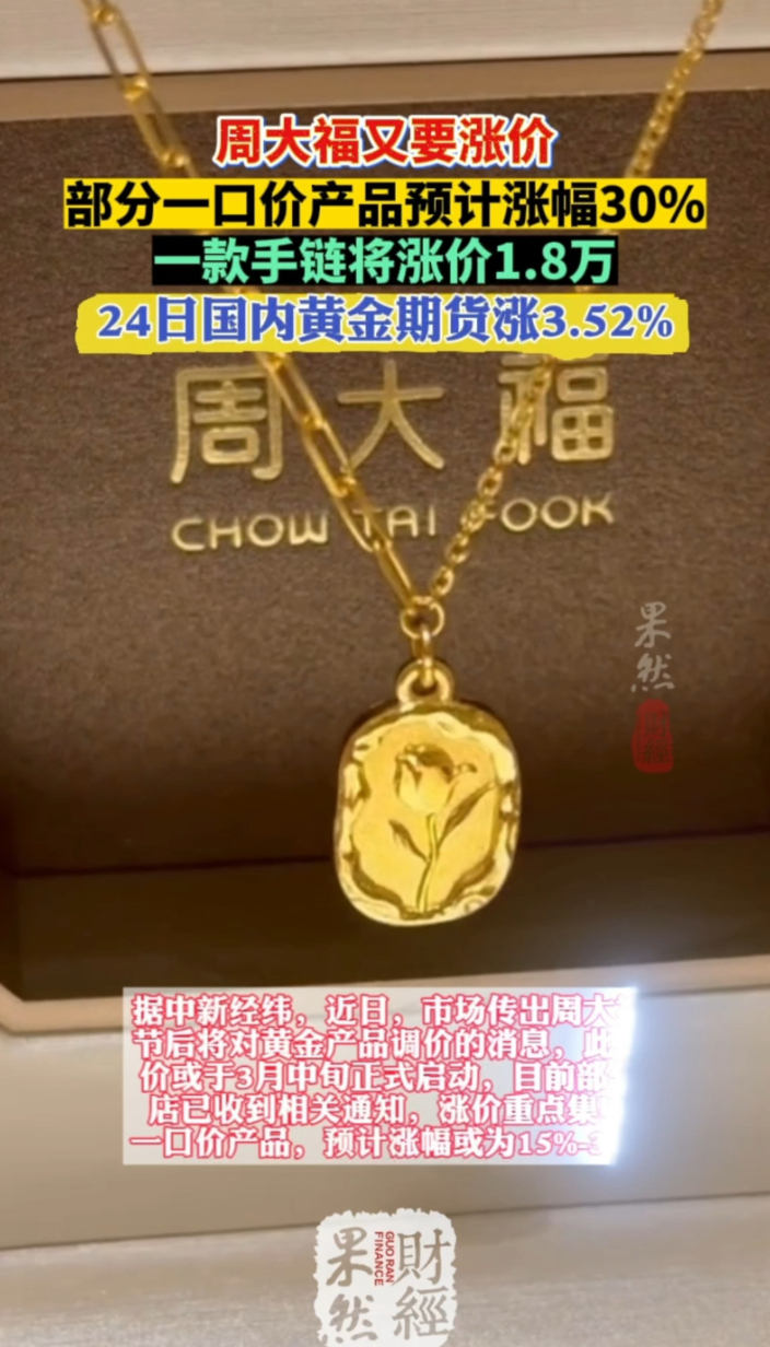 果然财经|周大福又要涨价!一款手链涨价近2万元,还抢不到?
