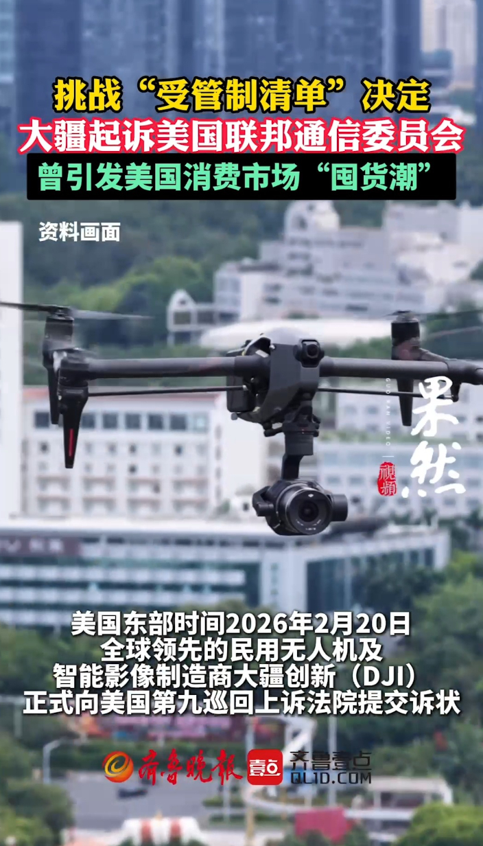 果然视频|挑战“受管制清单”决定!大疆起诉美国联邦通信委员会齐鲁晚报·齐鲁壹点客户端 10:12原创美国东部时间2026年2月20日,全球领先的民用无人机及智能影像制造商大疆创新(DJI),正式向美国第九巡回上诉法院提交诉状,挑战美国联邦通信委员会(FCC)2025年12月23日将大疆及产品列入“受管制清单”(Covered List)的不当决定。此举旨在维护企业合法权益、保护依赖大疆产品却受到禁令影响的美国消费者及广大农业行业用户利益。 (齐鲁晚报·齐鲁壹点 刁明杰)