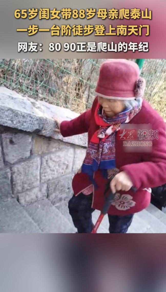65岁闺女带88岁母亲爬泰山 一步一台阶徒步登上南天门!网友:80 90正是爬山的年纪
