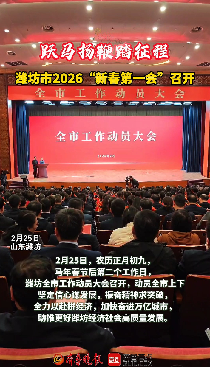 果然视频|潍坊市2026“新春第一会”召开齐鲁晚报·齐鲁壹点客户端 12:14原创春光为序开新局,跃马扬鞭踏征程。2月25日,农历正月初九,马年春节后第二个工作日,潍坊全市工作动员大会召开,动员全市上下坚定信心谋发展,振奋精神求突破,全力以赴拼经济,加快奋进万亿城市,助推更好潍坊经济社会高质量发展。 齐鲁晚报·齐鲁壹点 胡晓雪 王佳潼 马小杰