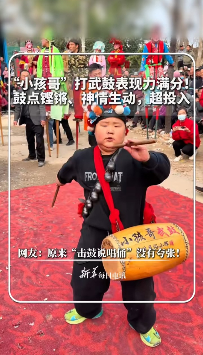 小孩哥”打武鼓表现力满分!鼓点铿锵、神情生动,超投入