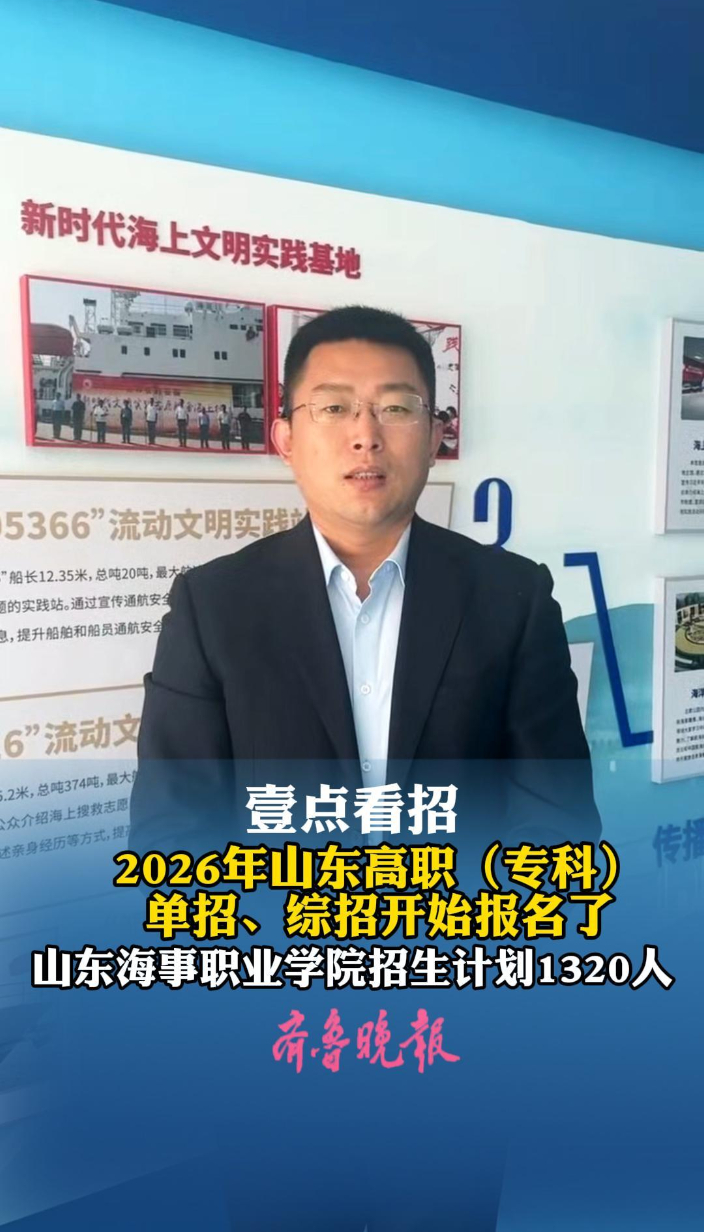 2026年山东省高职专科单独招生、综合评价招生报名开始了,2月25日至2月27日上午9点到下午6点,考生可登录山东省教育招生考试院招生平台填报志愿。山东海事职业学院报考代码为14346,单独招生和综合评价招生总计划1320人。学校单独招生文化素质考试及综合评价素质测试(面试)时间是3月7日。符合免试条件考生,需于2026年3月5日之前提出免试申请。(齐鲁晚报·齐鲁壹点记者 尹明亮 实习生 姚子萱)