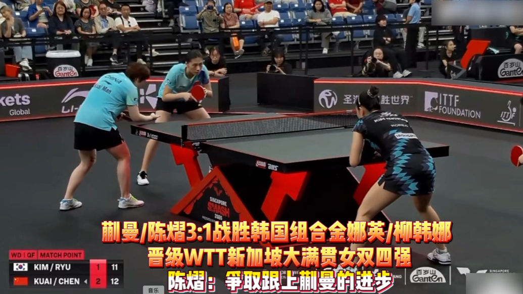 果然视频|蒯曼/陈熠3:1韩国组合,晋级新加坡大满贯女双四强 16:04 原创齐鲁晚报·齐鲁壹点客户端 微信扫码扫码下载客户端2月25日,WTT新加坡大满贯女双1/4决赛,蒯曼/陈熠3:1战胜韩国组合金娜英/柳韩娜,成功晋级四强。(齐鲁晚报·齐鲁壹点 怀晓)