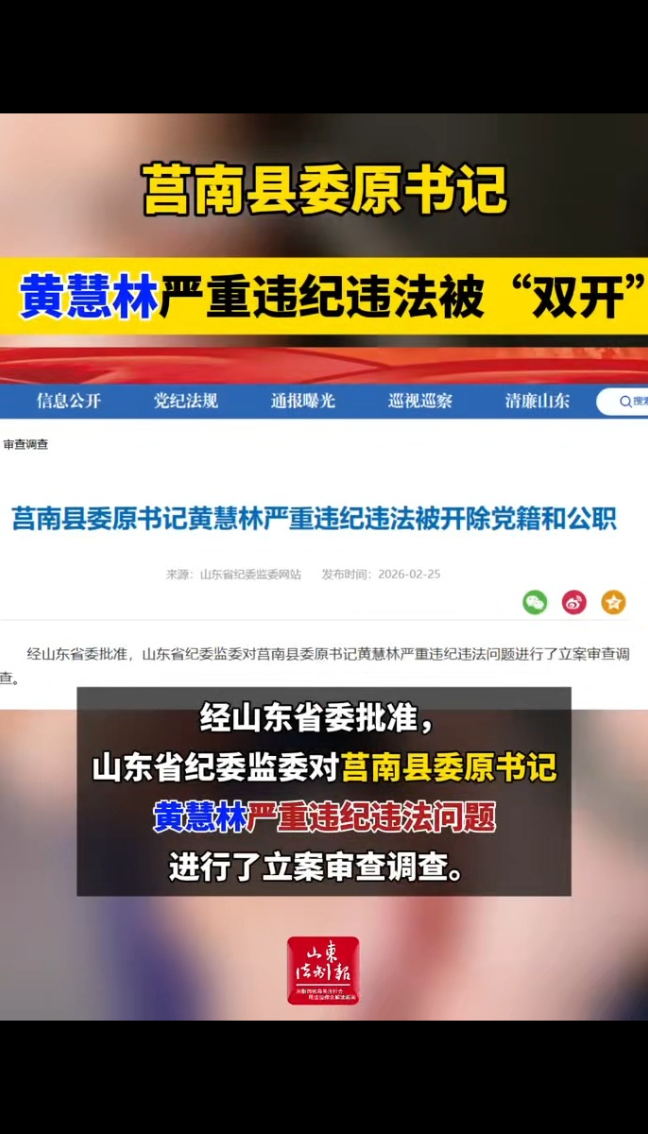 经山东省委批准,山东省纪委监委对莒南县委原书记黄慧林严重违纪违法问题进行了立案审查调查。