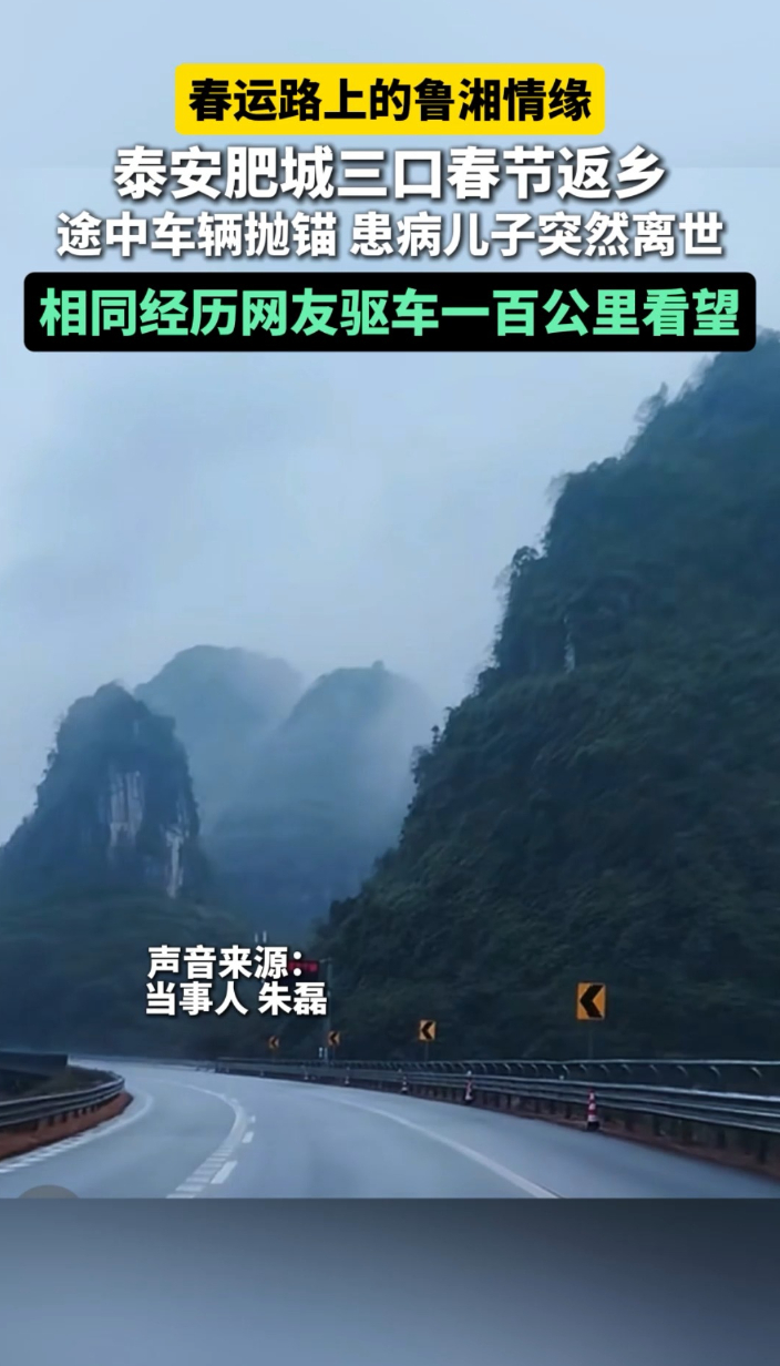 果然视频丨春运路上的鲁湘情缘,泰安肥城三口春节返乡,途中车辆抛锚 患病儿子突然离世,相同经历网友驱车一百多公里看望大众报业·齐鲁壹点 17:17 “感谢湖南人民,感谢桥头河服务区,感谢所有好心人!”春运路上,一段跨越千里的父爱坚守,一场突如其来的人间悲喜,在湖南高速交织成最动人的温情篇章。一位山东父亲带着患病妻儿千里归家,途中痛失至亲,在异乡绝境被素不相识的湖南人用善意紧紧托住,为这条春运归家路点亮了最温暖的光。 事发后,相同经历网友驱车一百多公里到服务区看望。