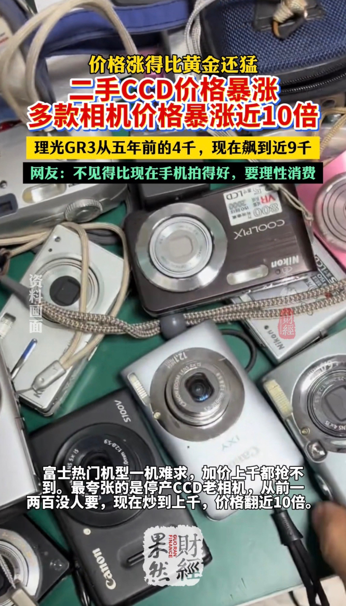 果然财经|二手CCD价格暴涨,多款相机涨价近十倍齐鲁壹点 | 17:58 原创齐鲁晚报·齐鲁壹点客户端 微信扫码扫码下载客户端最近相机市场彻底火了,有网友发现自己6年前2459元买的佳能,如今涨到4000多!理光GR3,也从五年前的4千,现在飙到近9千,涨幅比黄金还猛。