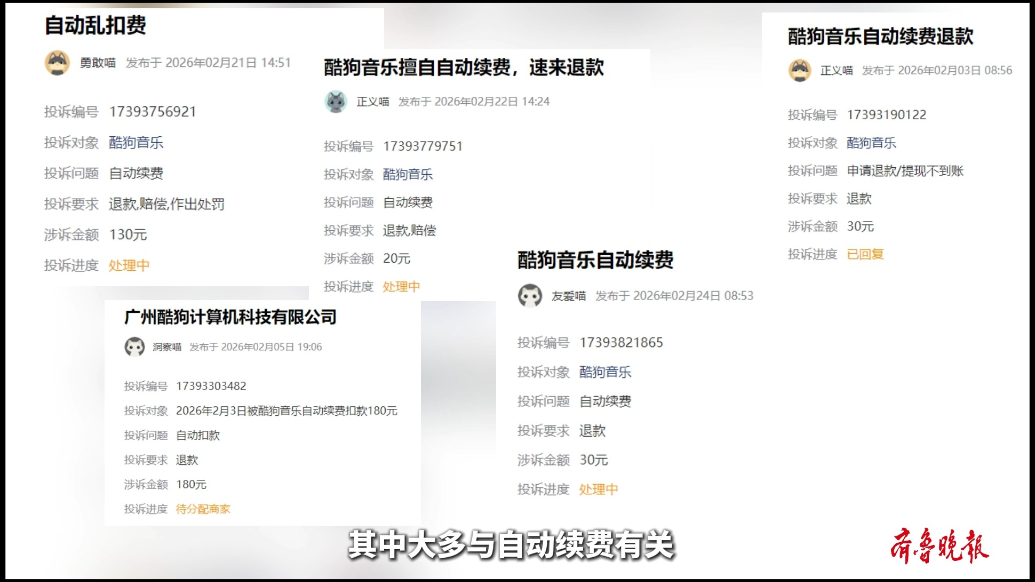 果然视频|取消自动续费仍被扣!酷狗音乐月投诉超700条齐鲁晚报·齐鲁壹点客户端 20:37原创近日,多位消费者反映,酷狗音乐存在自动续费“隐形陷阱”,不少用户在不知情的情况下被平台持续扣费,部分用户发现后申请退款遭拒,且取消自动续费流程存在诸多不便。(齐鲁晚报·齐鲁壹点爆料电话:0531-85193656;邮箱:405617016@qq.com)