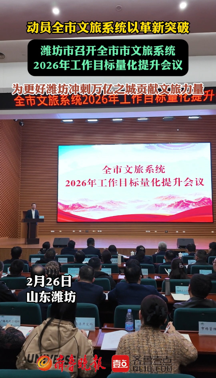 果然视频|以革新突破,潍坊文旅召开工作目标量化提升会议齐鲁晚报·齐鲁壹点客户端 16:31原创2月25日下午,全市文旅系统2026年工作目标量化提升会议召开。会议动员全市文旅系统以革新突破、敢为善成的奋进姿态,实干攻坚、提质增效,全力确保 “十五五”开好局、起好步,为更好潍坊冲刺万亿之城贡献文旅力量、展现文旅担当。 齐鲁晚报·齐鲁壹点 吴昊