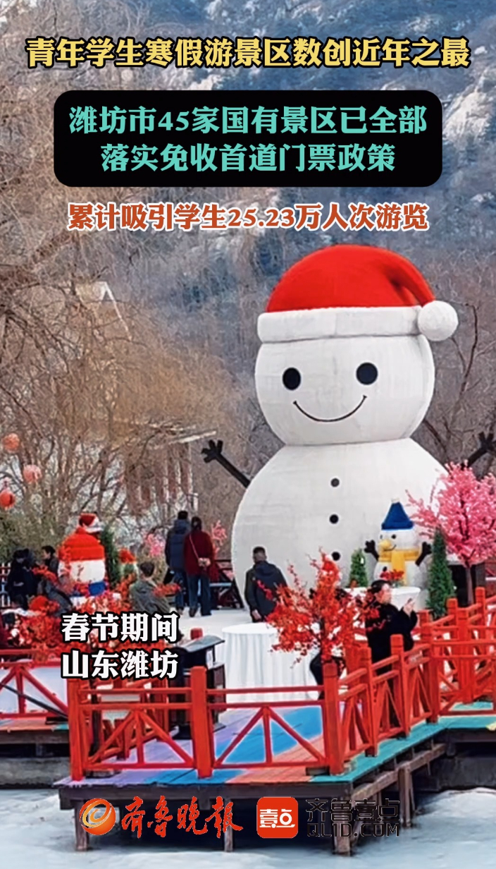 果然视频|青年学生寒假游览潍坊景区数创近年来之最齐鲁晚报·齐鲁壹点客户端 16:34原创自1月20日潍坊市对在校大中专学生景区门票优惠政策发布以来,截至2月24日,累计吸引学生25.23万人次游览、较2025年同期增长约32%,其中驻潍院校学生11.62万人次、占比46%,潍坊学院、山东第二医科大学、潍坊职业学院等居多;13.61万人次潍坊籍返潍学生游览景区、占比54%,山东师范大学、曲阜师范大学等居多,创近年来青年学生在寒假游览潍坊市景区数量之最。 齐鲁晚报·齐鲁壹点 吴昊