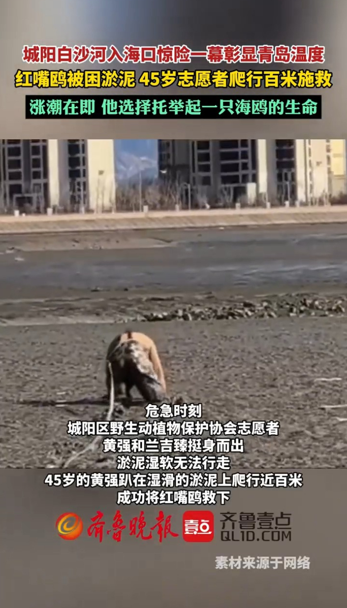 果然视频丨城阳白沙河入海口红嘴鸥被困淤泥,志愿者爬行百米施救齐鲁晚报·齐鲁壹点客户端 16:36原创近日,在青岛城阳白沙河墨水河入海口,一只红嘴鸥被气球绳子缠住,陷在淤泥里无法脱困。海水即将涨潮,危急时刻,城阳区野生动植物保护协会志愿者黄强和兰吉臻挺身而出。45岁的黄强趴在湿滑的淤泥上爬行近百米,成功将红嘴鸥救下。目前红嘴鸥状态稳定,经过休养康复后将会放归大自然。 (齐鲁晚报·齐鲁壹点记者 管慧晓 实习生 张文钰)