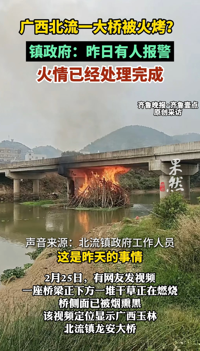 果然视频丨广西北流一大桥被火烤,镇政府:火情已处理完成
