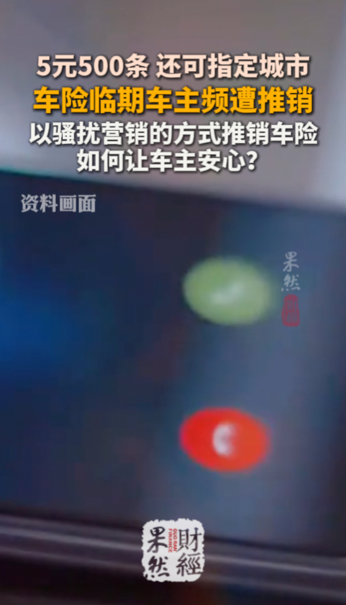 果然财评|车险临期车主频遭骚扰,行业营销乱象如何让车主安心?齐鲁壹点 | 17:00 原创齐鲁晚报·齐鲁壹点客户端 微信扫码扫码下载客户端最近不少车主朋友跟我们反映,车险还没到期,推销电话先炸了锅,一天十几个来电轮番轰炸,上班、休息、开车时都能接到,严重影响了正常生活。更让人不安的是,推销人员能精准说出你的姓名、车型、车险到期时间,信息准确得让人心里发慌,不少人都在担心,自己的隐私到底是怎么泄露出去的?
