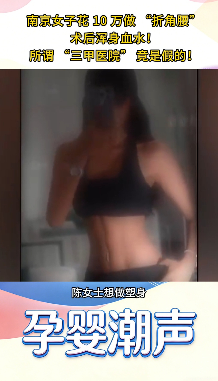 南京女子花10万做“折角腰”,术后浑身是血!三甲医院竟是假的齐鲁壹点 | 17:07 大众报业·齐鲁壹点 微信扫码扫码下载客户端南京陈女士因想塑身,在小红书被引流至宣称“公立三甲”的南京大学医学院附属南京国际医院,花费近10万做折角腰整形。术后她浑身是血,发现手术全程全麻且为多项高风险手术,与宣传的“无创口”不符。经查,该医院真实为二级私立南京恒信医院,属虚假宣传。记者暗访发现其仍谎称三甲,目前陈女士已向相关部门投诉,事件后续将持续追踪。