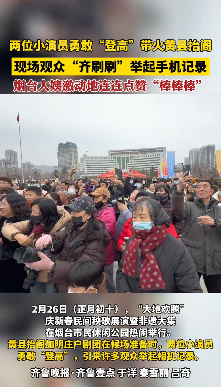 果然视频|烟台两位小演员“登高”带火黄县抬阁,获观众连连点赞齐鲁晚报·齐鲁壹点客户端 昨天20:43原创2026年2月26日(正月初十),“大地欢腾”庆新春民间秧歌展演暨非遗大集在烟台市民休闲公园热闹举行。现场,两位小演员勇敢“登高”带火黄县抬阁,现场观众“齐刷刷”举起手机记录,烟台大姨激动地连连点赞“棒棒棒”。(齐鲁晚报·齐鲁壹点 于洋 秦雪丽 吕奇)