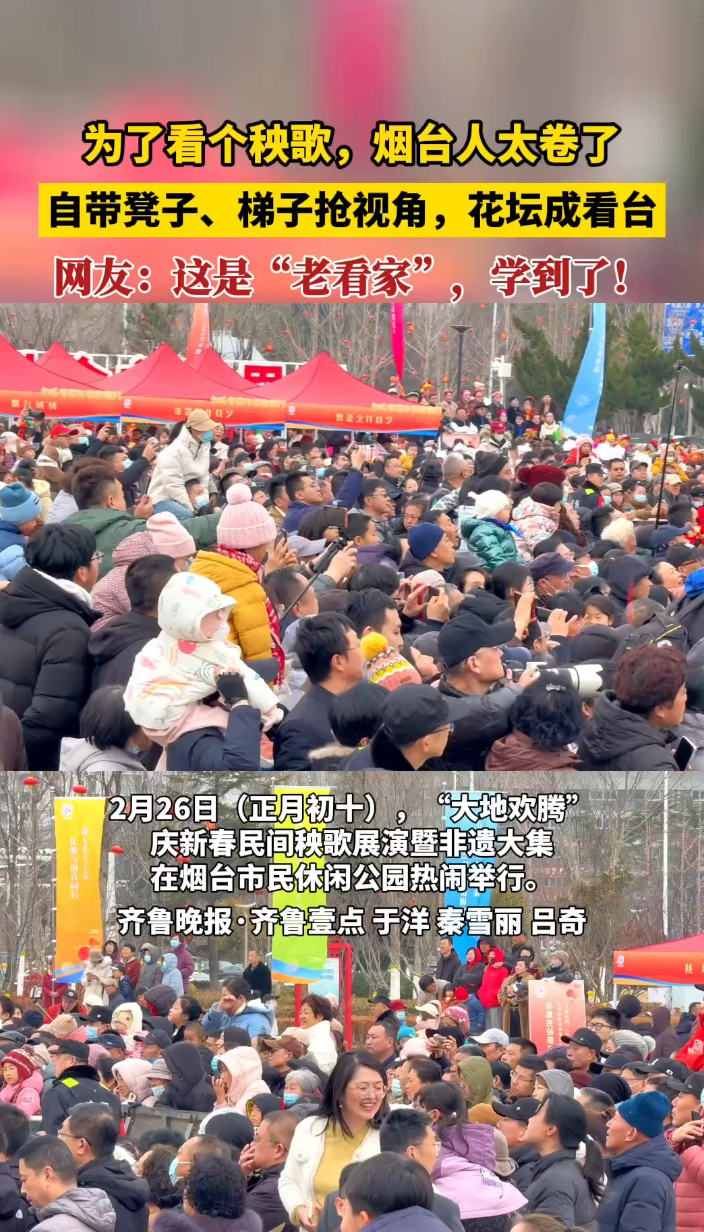 果然视频|为了看秧歌,烟台人太卷了!自带凳子、梯子抢视角齐鲁晚报·齐鲁壹点客户端 昨天20:45原创2026年2月26日(正月初十),“大地欢腾”庆新春民间秧歌展演暨非遗大集在烟台市民休闲公园热闹举行。为了看大秧歌,烟台人太卷了!自带凳子、梯子抢视角,花坛成看台。网友:这是“老看家”,学到了!(齐鲁晚报·齐鲁壹点 于洋 秦雪丽 吕奇)