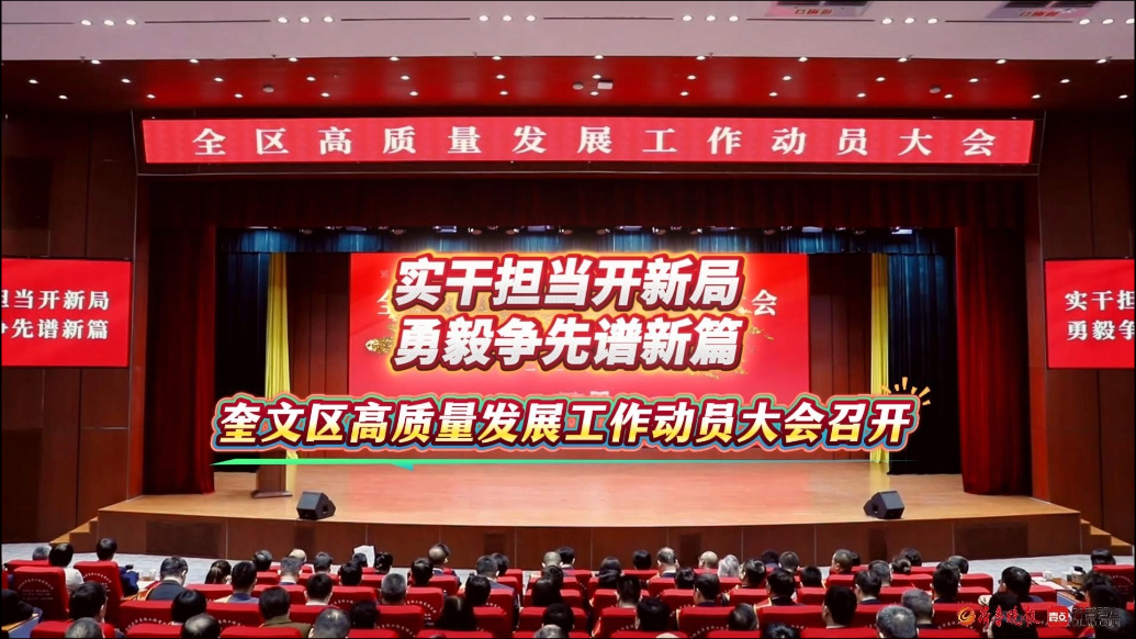 果然视频|奎文区高质量发展工作动员大会召开齐鲁晚报·齐鲁壹点客户端 昨天23:22原创实干担当开新局,勇毅争先谱新篇。2月26日,潍坊市奎文区高质量发展工作动员大会召开。会议全面落实全省干事创业担当尽责确保“十五五”开好局工作会议和全市工作动员大会精神,统一思想、凝聚共识、鼓舞斗志,动员全区上下以开局就是决战、起步就是冲刺的姿态,全力以赴拼经济、攻坚克难抓落实、凝心聚力促发展,奋力推动奎文高质量发展迈上新台阶、开创新局面。 齐鲁晚报·齐鲁壹点 胡晓雪
