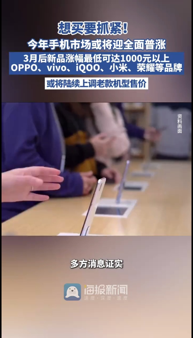 新浪科技从供应链人士、行业分析机构及多家手机品牌内部人士处获悉,3月起,手机涨价将进入加速阶段,新品涨幅最低可达1000元以上,同时OPPO、一加、vivo、iQOO、小米、荣耀等主流品牌或将陆续上调老款机型售价,叠加内存成本的频繁波动,2026年中国手机市场或将面临历史上首次一年内多次上调价格的局面。