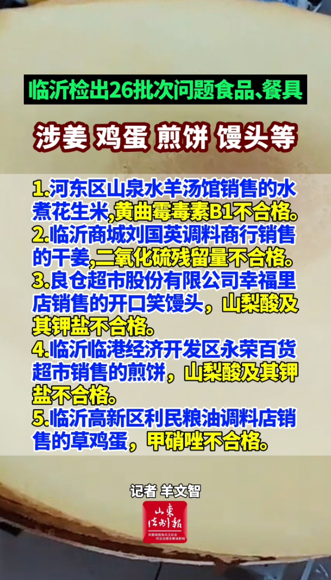 临沂检出26批次问题食品、餐具,涉姜、鸡蛋、煎饼、馒头等