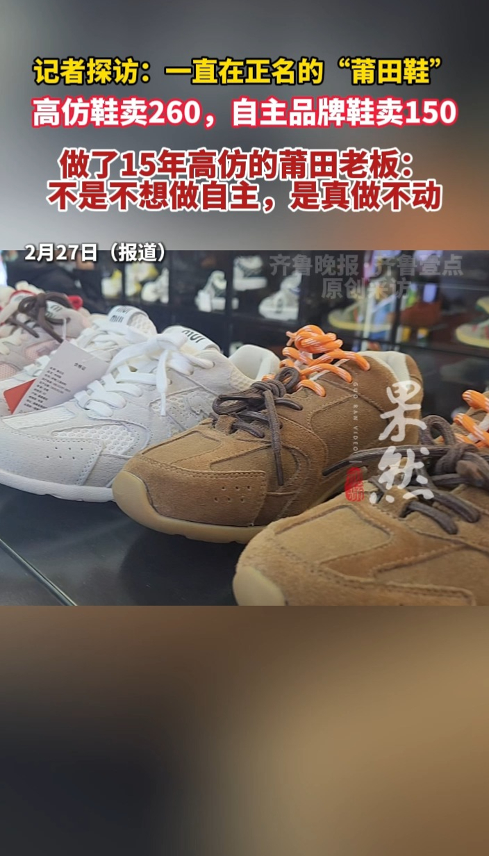 果然视频|记者探访:一直在正名的“莆田鞋”齐鲁晚报·齐鲁壹点客户端 11:52原创齐鲁晚报·齐鲁壹点 鲁畅 岳致呈 2022年,“莆田鞋”图形集体商标获得国家知识产权局批准注册。彼时,这一被寄予厚望的区域品牌,被视为莆田甩掉“山寨之都”帽子的关键落子。三年过去,这座因仿制闻名、也因仿制困扰的城市,它的“改命”之路,究竟走到哪一步了?(齐鲁晚报·齐鲁壹点爆料电话:0531-85193656;邮箱:405617016@qq.com)