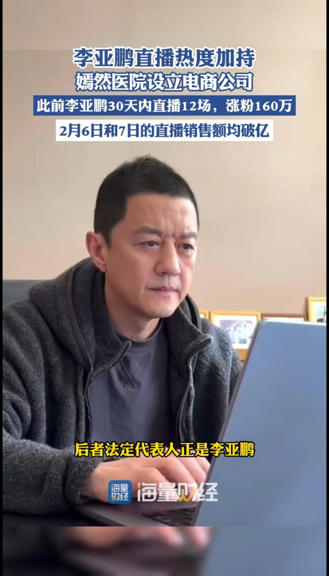 海量财经丨李亚鹏直播热度加持 嫣然医院设立电商公司