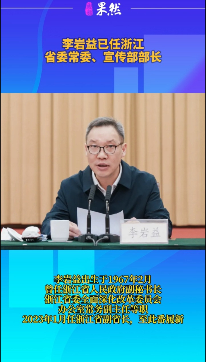观政视频|李岩益已任浙江省委常委、宣传部部长 14:27 原创齐鲁晚报·齐鲁壹点客户端 微信扫码扫码下载客户端《嘉兴日报》消息,2月26日上午,浙江省委常委、宣传部部长李岩益率队来嘉兴瞻仰红船、参观南湖革命纪念馆。上述信息显示,李岩益已担任浙江省委常委、宣传部部长。