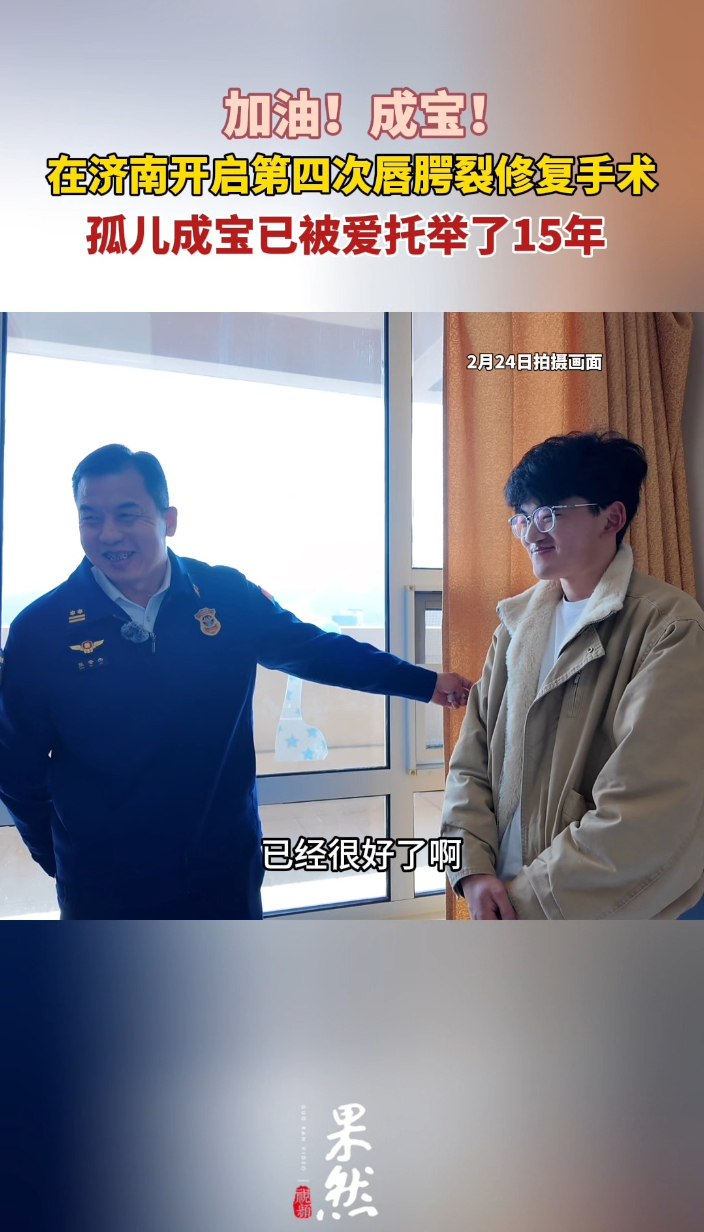 果然视频|在济南开启第四次唇腭裂手术,成宝已被爱托举15年 16:41 原创齐鲁晚报·齐鲁壹点客户端 微信扫码扫码下载客户端正月初十,济南千佛山医院。21岁的成宝被推进了手术室,开始第四次唇腭裂修复手术。成宝出生5个月被遗弃,9岁时,养父去世他成了孤儿,再到如今一名大学生。15年时间里,一群素不相识的好心人,用爱心接力照亮他的成长道路,托举他向充满希望的未来前行。