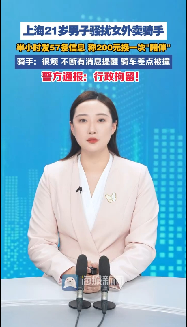 “200元换陪伴一次”00后女骑手上海遭21岁男顾客骚扰,半小时发送57条消息,警方通报:依法行政拘留!