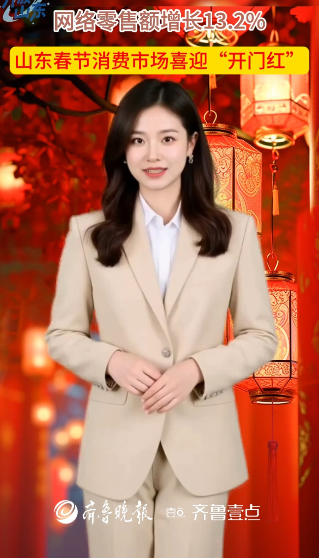 AI商务发布丨山东春节消费市场喜迎“开门红”大众新闻·齐鲁壹点 18:12原创山东省商务厅数据显示,2026年春节假期,山东消费市场热力全开,重点零售和餐饮企业销售额同比增长15%,网络零售额达179.8亿元,增长13.2%,实现新春“开门红”。