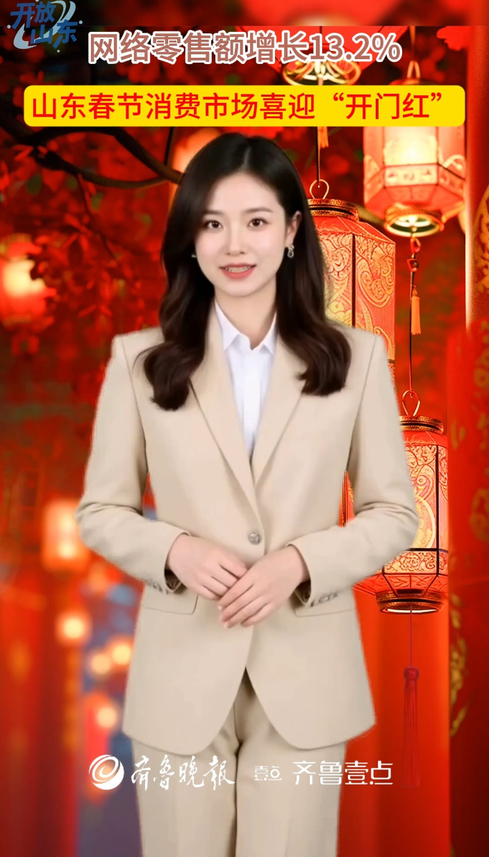 AI商务发布丨山东春节消费市场喜迎“开门红”大众报业·齐鲁壹点 18:39山东省商务厅数据显示,2026年春节假期,山东消费市场热力全开,重点零售和餐饮企业销售额同比增长15%,网络零售额达179.8亿元,增长13.2%,实现新春“开门红”。
