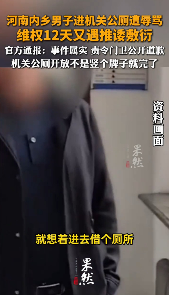 河南内乡男子进机关公厕遭辱骂。官方通报:事件属实,责令门卫公开道歉。