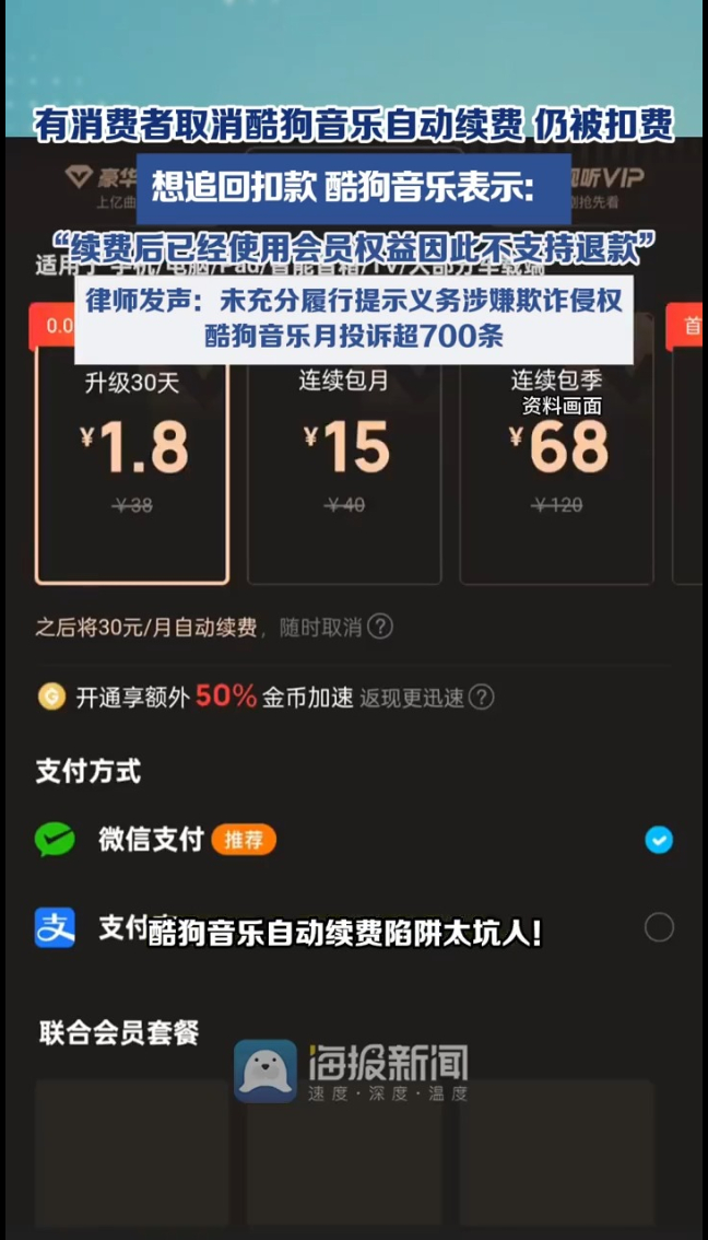 主播说 | 有消费者取消酷狗音乐自动续费后仍被扣费 ,酷狗音乐:续费后已经使用会员权益因此不支持退款