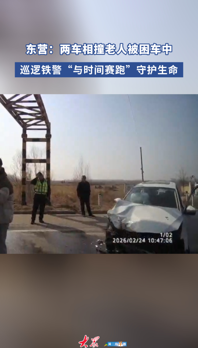 东营:两车相撞老人被困车中 巡逻铁警紧急救援化险为夷大众新闻 19:18原创2月24日,青岛铁路公安处东营南站派出所民警在辖区周边巡逻时,发现一起交通事故,迅速开展现场救援、交通疏导与伤员救护,为伤者赢得宝贵救治时间,用实际行动守护群众生命安全。(大众新闻记者 王超 李小凡)